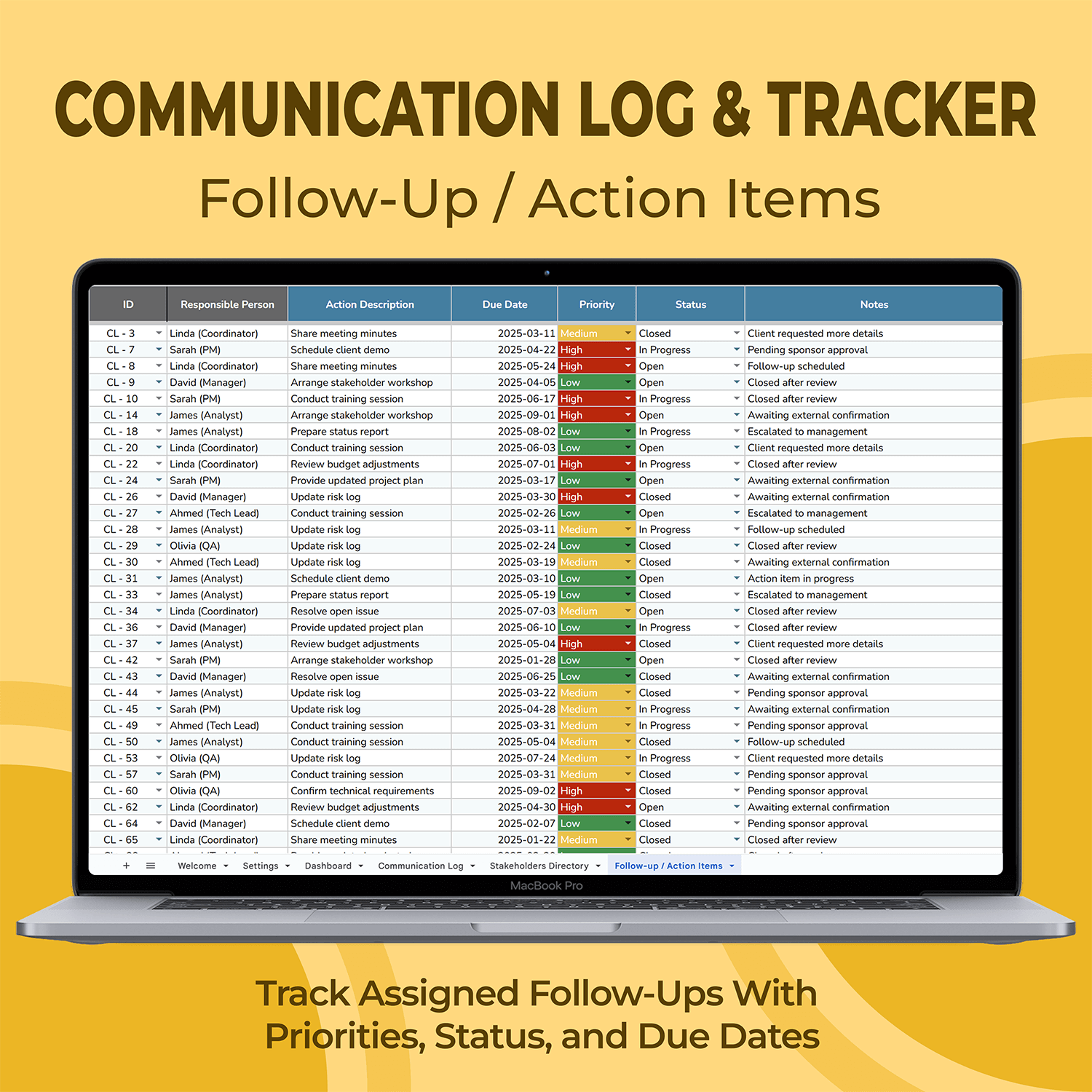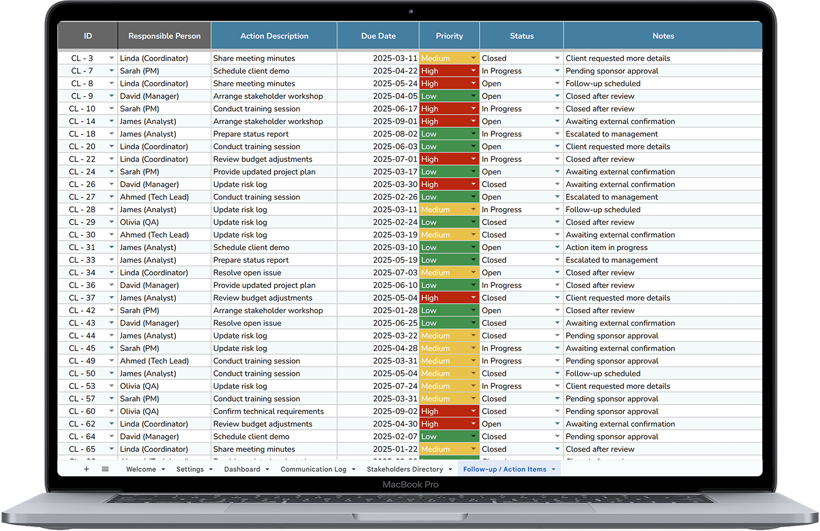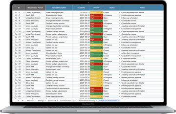 ✔ Track Deadlines and Priorities: Keep actions organized with due dates and priority levels.
