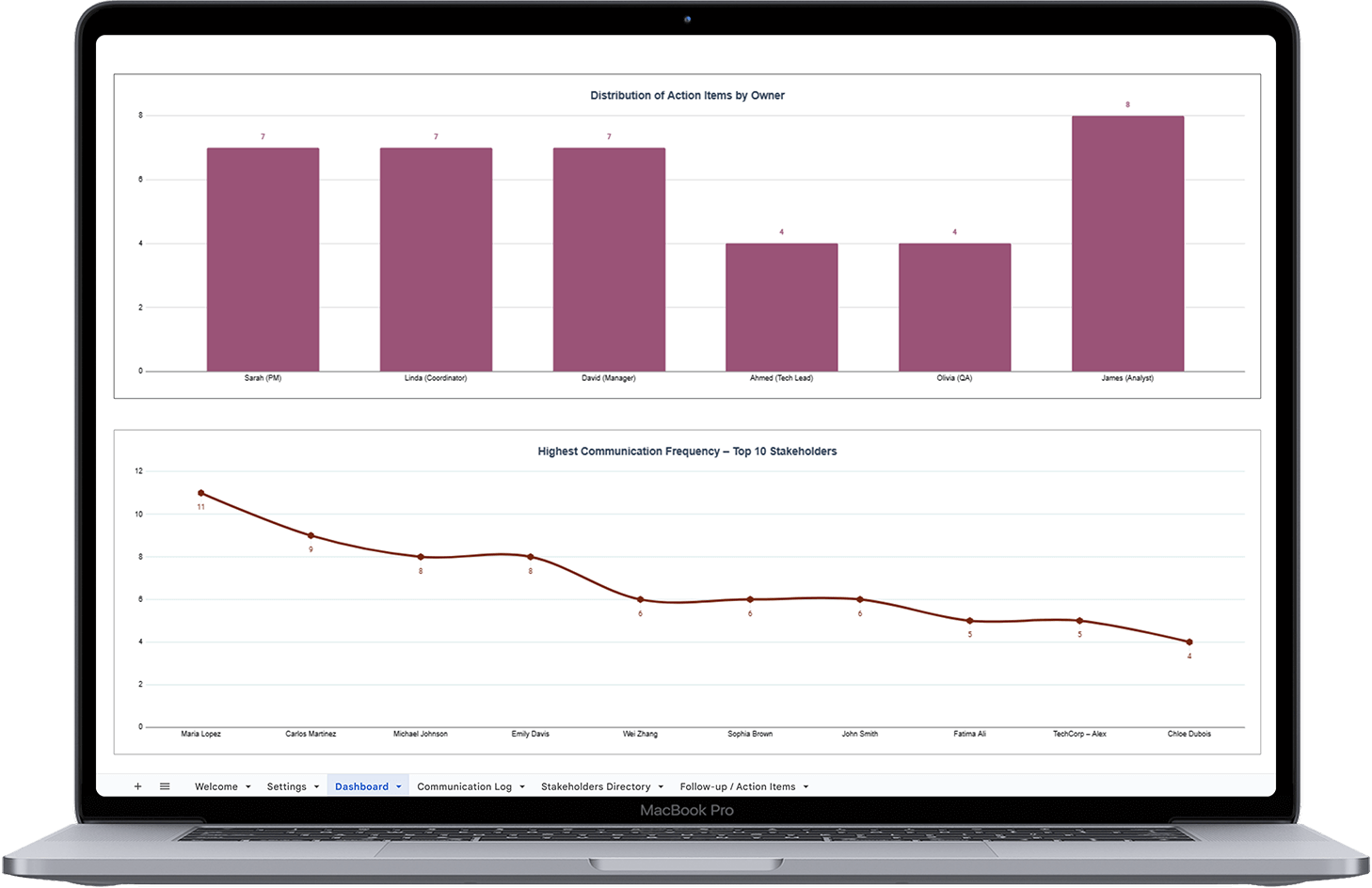 ✔ Identify Frequent Communication: See which stakeholders require the most engagement.