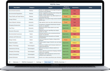 ✔ Detailed Entries: Input and detail specific PESTEL factors.