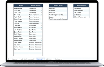 ✔ Define Roles: Specify roles for RACI categories.