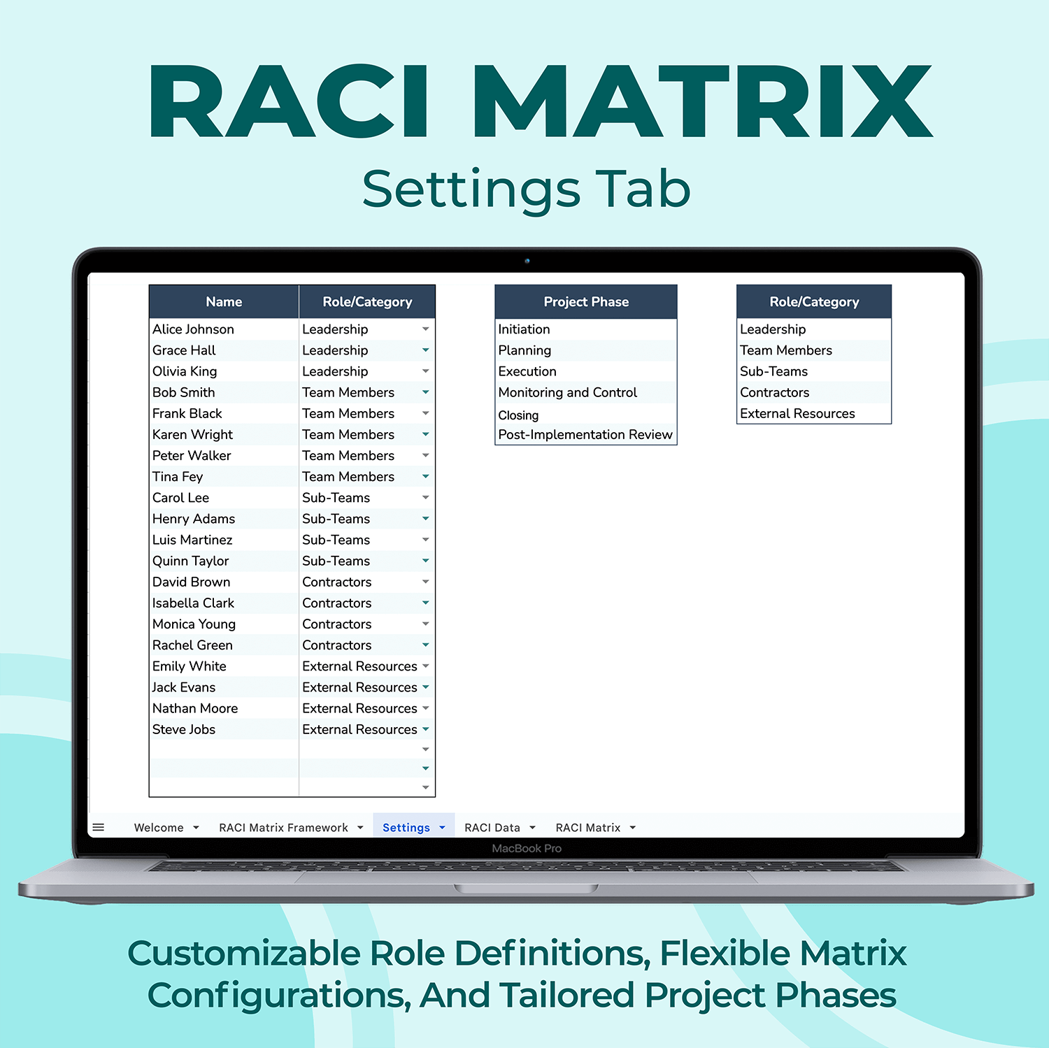 ✔ Color Distinctions: Highlight RACI roles with colours.