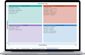 ✔ Interactive Quadrants:Visualize stakeholder positioning in key areas.