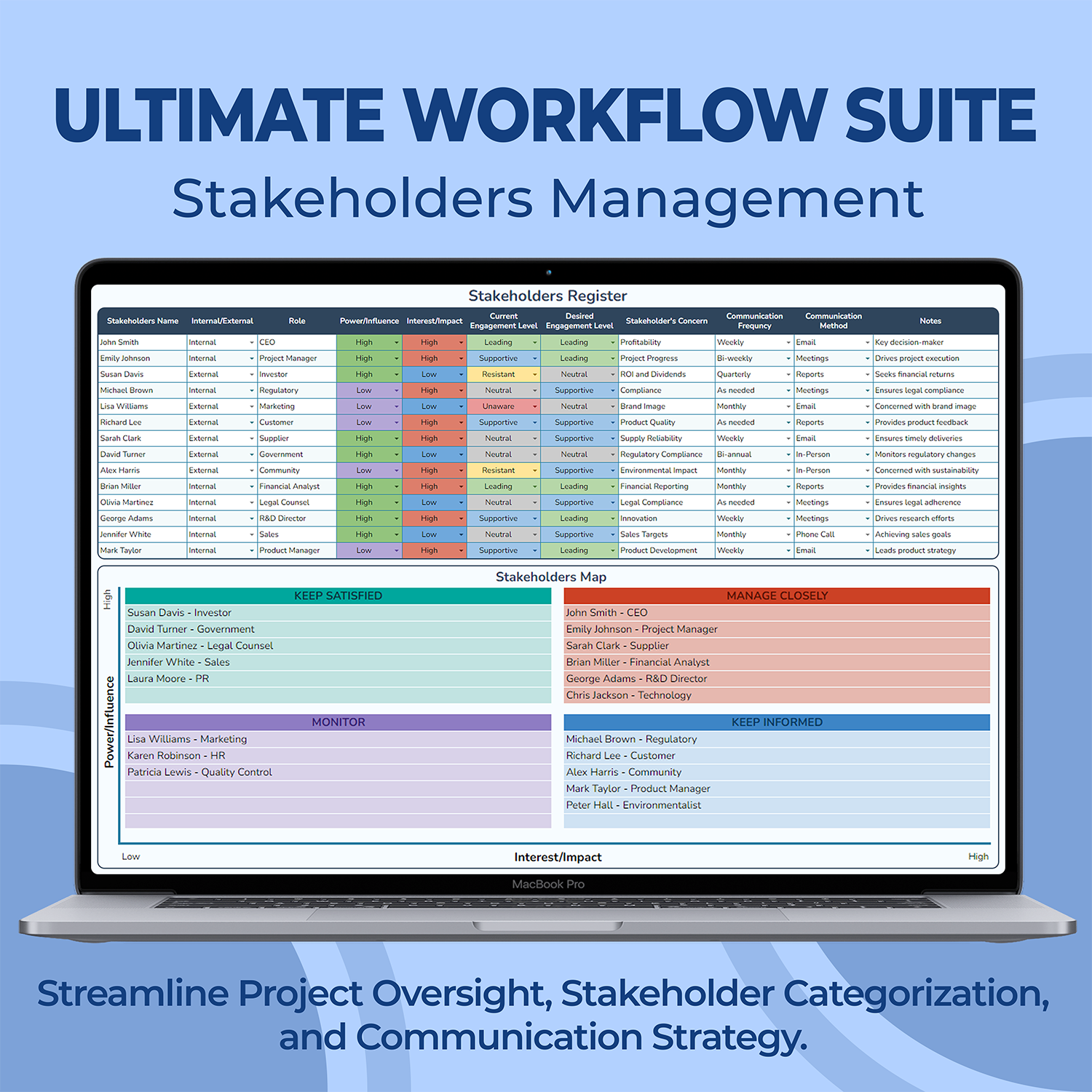 ✔ Influence Analysis: Track and categorize stakeholders by power and impact.